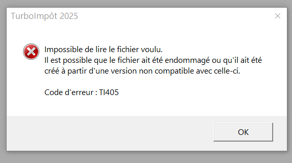message envoyé le 13-11-2025 par trad https://www.youtube.com/watch?v=mhBVZ0bs0zM. Par la suite j'ai téléchargé et installé Téléchargement Turboimpôt 2025 (français) Message envoyé le 11-11-2025 par didier j'ai suivi la procédure de 2024 concernant le .dll que j'ai installé et lorsque je tente d'ouvrir Turboimpôt2025 la boîte de dialogue mise à jour apparaît puis elle s'effece et plus rien autant en tentative utilisateur qu'administrateur.